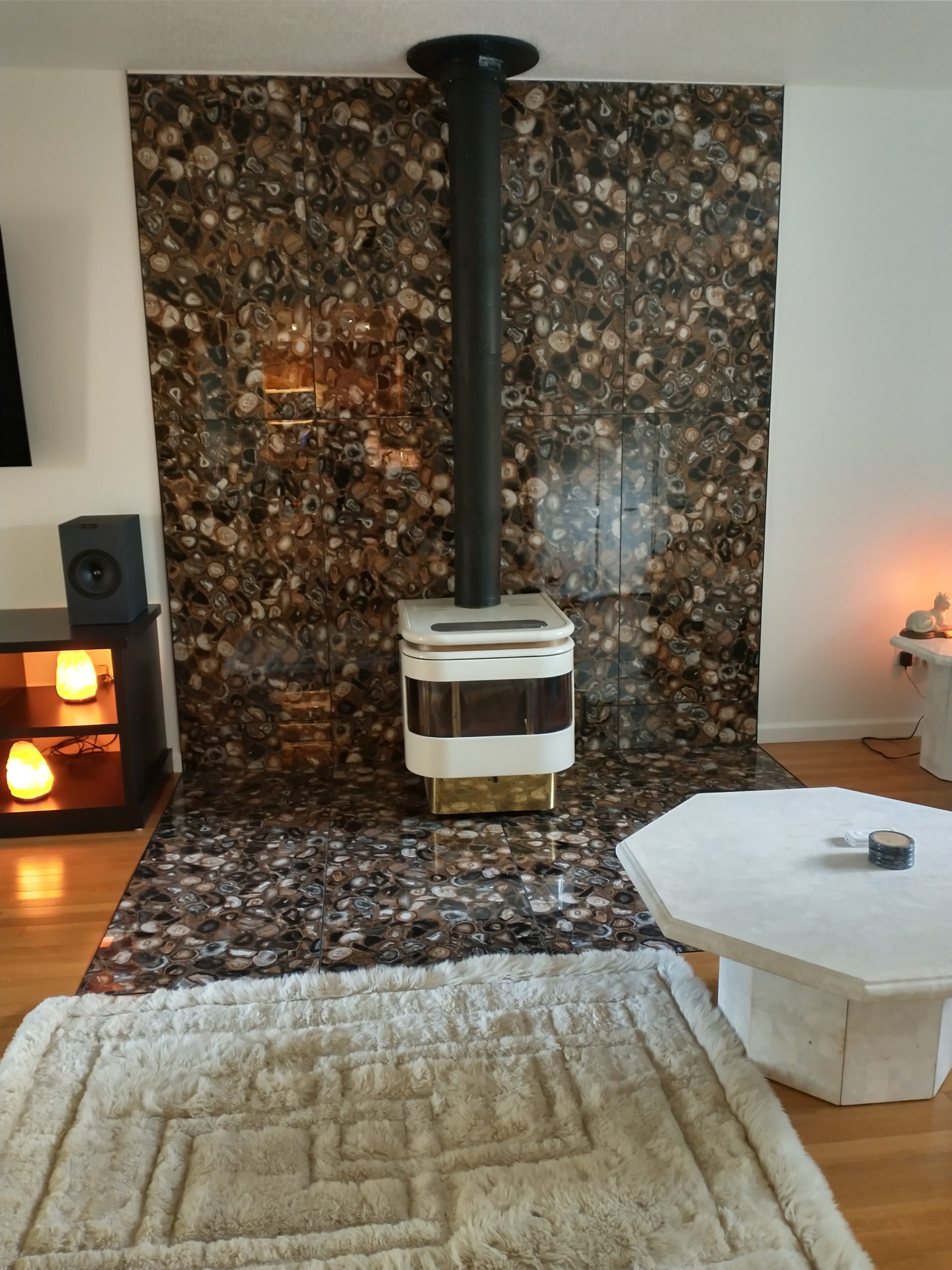 I absolutely love the tile with black metal trim and black grout. The renovation is beautiful. I wanted to share how happy I am with your products and service. I have purchased tile for 2 bathrooms and the family room from your company. All of the tile has been exceptional. The Lazy Boy designer saw the tile and loved it. I told her where I bought it. There was 1 tile left so I bought a table frame only from Menards. My contractor cut the tile to fit the frame so I have a matching end table. I look at this room and smile every day.